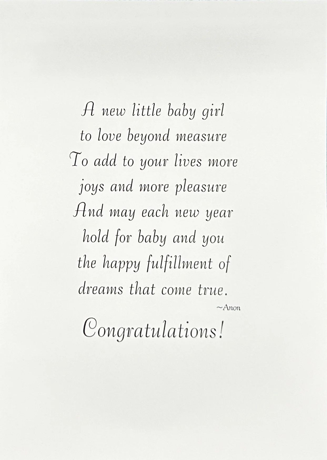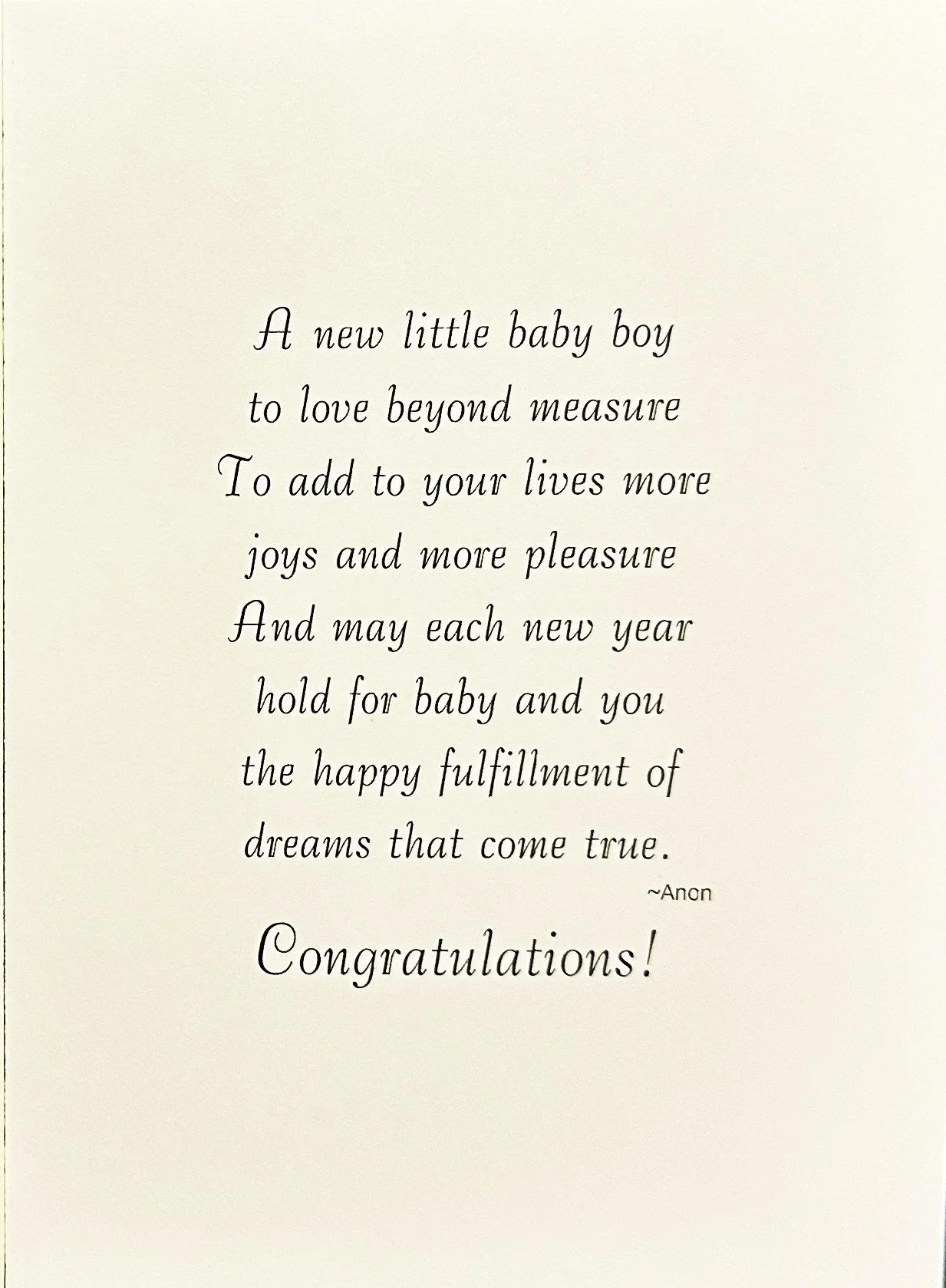 Categories: All Motion Card Birthday For Her Cute Heartfelt Humor Religious Romantic Blank/No Sentiment Angels Animals/Creatures Butterflies Dragonflies Gnome Insects/Bugs Hearts/Valentines Hummingbirds Music Sports For Him Cute Heartfelt Humor Religious Romantic Blank/No Sentiment Music Sports For Anyone Cute Humor Music Religious Animals/Creatures Gnome St. Patrick's Day Birthday July 4th Birthday Halloween Birthday Thanksgiving/Fall Birthday Christmas Birthday For Kids Cute Heartfelt Humor Cards With Moving Parts Blank/No Sentiment Animals/Creatures Baby's 1st Birthday Belated Engagement Cute Heartfelt Humor Religious Wedding Cute Heartfelt Humor Religious Civil Ceremony Anniversary Funny For Couple For Spouse Baby For Baby Girl For Baby Boy When Sex is Unknown Baptism/Christening Cute Heartfelt Religious Get Well For Her Cute Heartfelt Humor Religious For Him Cute Heartfelt Humor Religious For Anyone Cute Heartfelt Humor Religious Sympathy Heartfelt Religious Thank You Cute Heartfelt Humor Blank/No Sentiment Thinking Of You Cute Humor Heartfelt Religious Blank/No Sentiment Love & Sending Hugs Cute Heartfelt Humor Blank/No Sentiment Hello & Brighten Your Day Cute Heartfelt Humor Blank/No Sentiment Retirement Cute Heartfelt Humor New Home Cute Heartfelt Humor Blank/No Sentiment Congratulations/Celebrations Cute Heartfelt Humor Blank/No Sentiment Pet Sympathy For Dog For Cat New Year Valentine's Day For Her Cute Heartfelt Humor Religious Romantic Valentine Birthday For Him Cute Heartfelt Humor Religious Romantic - For Kids Cute Humor Heartfelt Cards With Moving Parts St Patrick's Day For Anyone Cute Heartfelt St. Patrick's Day Birthday For Kids Cute Heartfelt Cards With Moving Parts Easter For Anyone Cute Heartfelt Humor Religious For Kids Cute Heartfelt Humor Religious Cards With Moving Parts Mother's Day For Family Member Cute Heartfelt Humor Religious From Kids Cute Heartfelt Humor Religious Father's Day For Spouse Cute Heartfelt Humor Religious For First Time Dads From Kids Cute Heartfelt Humor Religious Graduation For Her Cute Heartfelt Humor Religious For Him Cute Heartfelt Humor Religious For Anyone Cute Heartfelt Humor Religious Halloween For Anyone Cute Humor Cards With Moving Parts Spooky Halloween Birthday For Kids Cute Humor Cards With Moving Parts Spooky Thanksgiving For Anyone Cute Heartfelt Humor Religious Thanksgiving Birthday For Kids Cute Heartfelt Humor Religious Cards With Moving Parts Hanukkah Christmas For Family Cute Heartfelt Religious For Couple Cute Heartfelt Religious For Kids Cute Heartfelt Humor Religious Cards With Moving Parts Religious Angels Playful Angel Animal/Bird Cute Gnome Heartfelt Humor Santa Winter Scene Cards With Moving Parts Blank Note Cards Blank Photo Note Cards Baby For Baby Girl | For Baby Boy | When Sex is Unknown | Congratulations Welcome to the World $7.99 Add To Cart Added! Hello Baby $7.99 Add To Cart Added! Welcome Little One $7.99 Add To Cart Added! Hello Baby $10.99 Add To Cart Added! Sweet baby $7.99 Add To Cart Added! Baby $7.99 Add To Cart Added! Sweet baby $7.99 Add To Cart Added! Baby $7.99 Add To Cart Added! Baby Sweet BABY $7.99 Add To Cart Added! Hello BABY $9.99 Add To Cart Added! It's a Girl! $7.99 Add To Cart Added! Welcome little One $7.99 Add To Cart Added! Sweet Baby $7.99 Add To Cart Added! It's a Boy! $7.99 Add To Cart Added! Hello baby Boy $9.99 Add To Cart Added! It's A Boy $8.99 Add To Cart Added! Sweet Baby Boy So Handsome $8.99 Add To Cart Added! Welcome Little One $8.99 Add To Cart Added! Hello Baby Congratulations Welcome to the World $8.99 Add To Cart Added! Sweet Baby $7.99 Add To Cart Added! Girl $10.99 Add To Cart Added! Baby $9.99 Add To Cart Added!