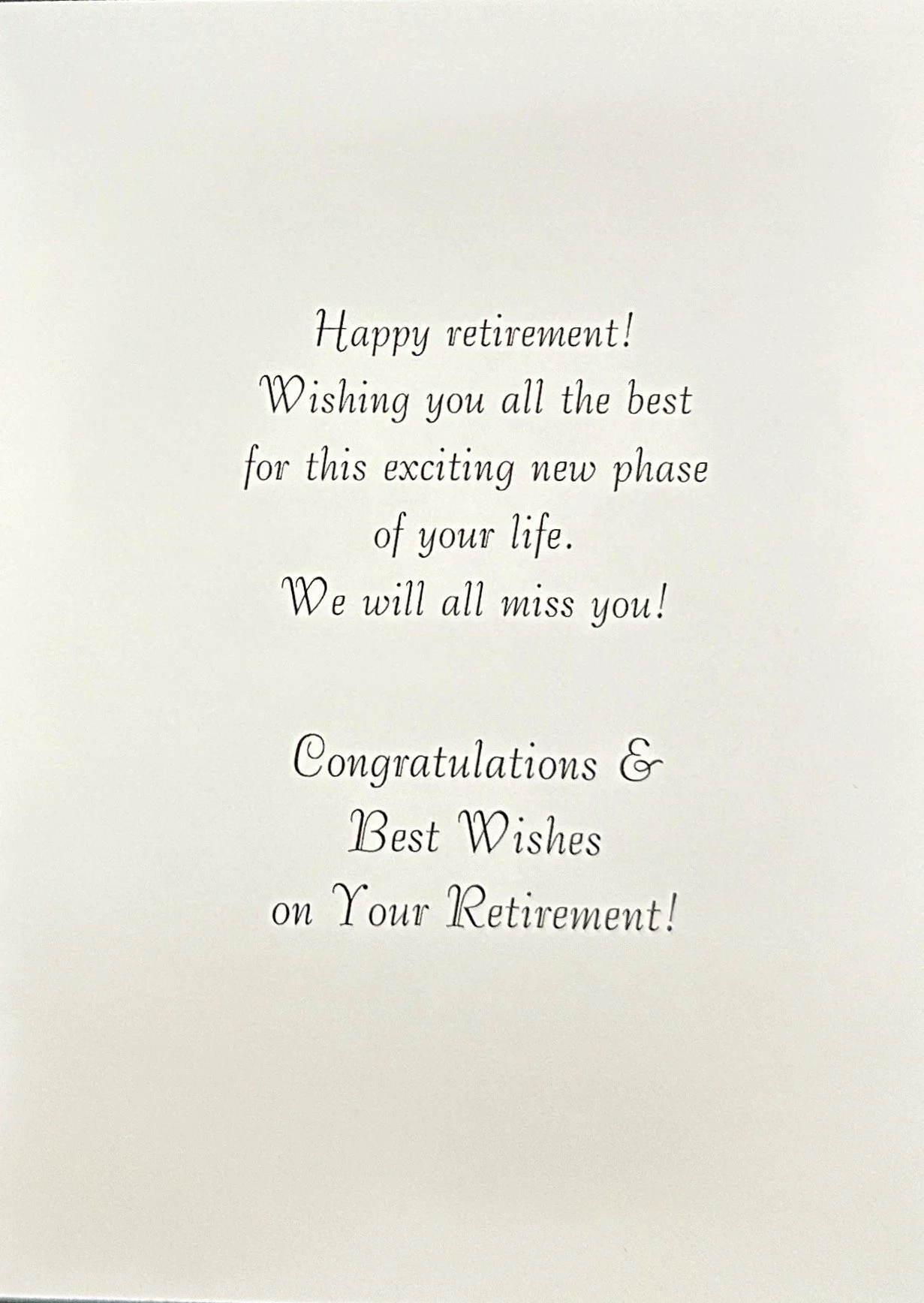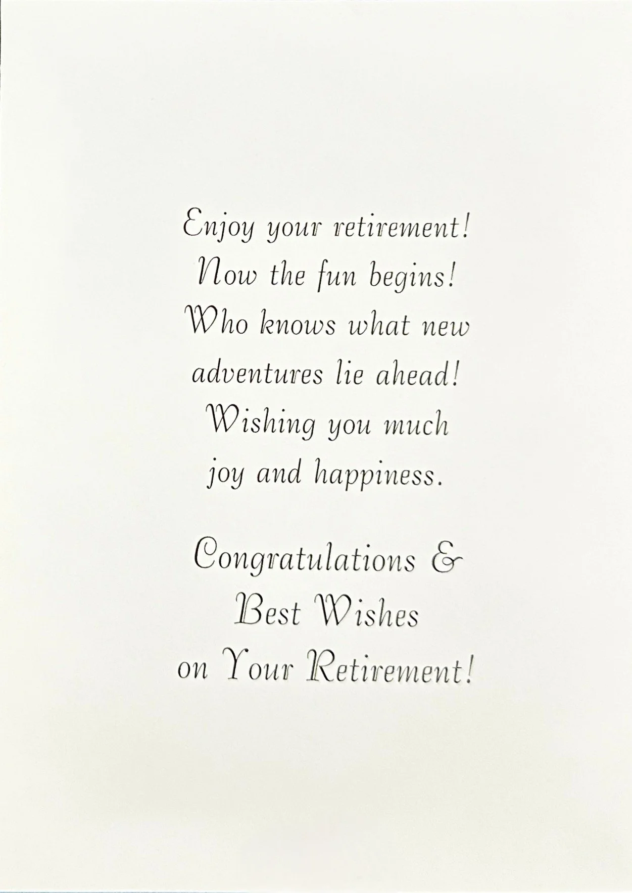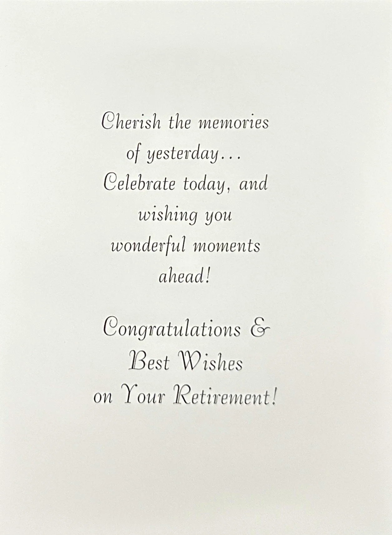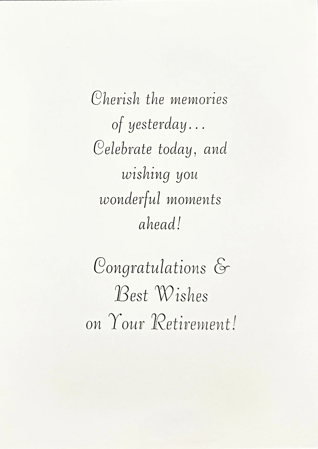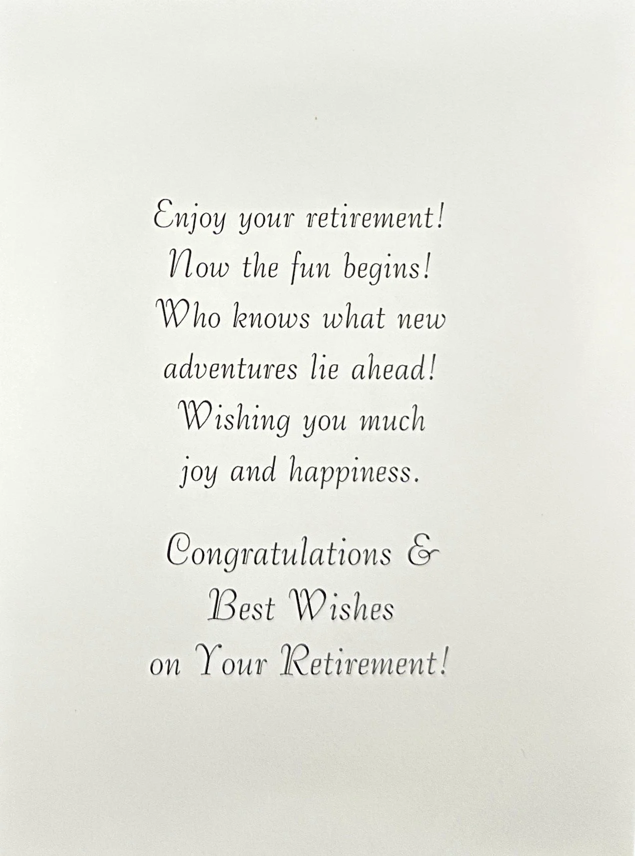 Categories: All Motion Card Birthday For Her Cute Heartfelt Humor Religious Romantic Blank/No Sentiment Angels Animals/Creatures Butterflies Dragonflies Gnome Insects/Bugs Hearts/Valentines Hummingbirds Music Sports For Him Cute Heartfelt Humor Religious Romantic Blank/No Sentiment Music Sports For Anyone Cute Humor Music Religious Animals/Creatures Gnome St. Patrick's Day Birthday July 4th Birthday Halloween Birthday Thanksgiving/Fall Birthday Christmas Birthday For Kids Cute Heartfelt Humor Cards With Moving Parts Blank/No Sentiment Animals/Creatures Baby's 1st Birthday Belated Engagement Cute Heartfelt Humor Religious Wedding Cute Heartfelt Humor Religious Civil Ceremony Anniversary Funny For Couple For Spouse Baby For Baby Girl For Baby Boy When Sex is Unknown Baptism/Christening Cute Heartfelt Religious Get Well For Her Cute Heartfelt Humor Religious For Him Cute Heartfelt Humor Religious For Anyone Cute Heartfelt Humor Religious Sympathy Heartfelt Religious Thank You Cute Heartfelt Humor Blank/No Sentiment Thinking Of You Cute Humor Heartfelt Religious Blank/No Sentiment Love & Sending Hugs Cute Heartfelt Humor Blank/No Sentiment Hello & Brighten Your Day Cute Heartfelt Humor Blank/No Sentiment Retirement Cute Heartfelt Humor New Home Cute Heartfelt Humor Blank/No Sentiment Congratulations/Celebrations Cute Heartfelt Humor Blank/No Sentiment Pet Sympathy For Dog For Cat New Year Valentine's Day For Her Cute Heartfelt Humor Religious Romantic Valentine Birthday For Him Cute Heartfelt Humor Religious Romantic - For Kids Cute Humor Heartfelt Cards With Moving Parts St Patrick's Day For Anyone Cute Heartfelt St. Patrick's Day Birthday For Kids Cute Heartfelt Cards With Moving Parts Easter For Anyone Cute Heartfelt Humor Religious For Kids Cute Heartfelt Humor Religious Cards With Moving Parts Mother's Day For Family Member Cute Heartfelt Humor Religious From Kids Cute Heartfelt Humor Religious Father's Day For Spouse Cute Heartfelt Humor Religious For First Time Dads From Kids Cute Heartfelt Humor Religious Graduation For Her Cute Heartfelt Humor Religious For Him Cute Heartfelt Humor Religious For Anyone Cute Heartfelt Humor Religious Halloween For Anyone Cute Humor Cards With Moving Parts Spooky Halloween Birthday For Kids Cute Humor Cards With Moving Parts Spooky Thanksgiving For Anyone Cute Heartfelt Humor Religious Thanksgiving Birthday For Kids Cute Heartfelt Humor Religious Cards With Moving Parts Hanukkah Christmas For Family Cute Heartfelt Religious For Couple Cute Heartfelt Religious For Kids Cute Heartfelt Humor Religious Cards With Moving Parts Religious Angels Playful Angel Animal/Bird Cute Gnome Heartfelt Humor Santa Winter Scene Cards With Moving Parts Blank Note Cards Blank Photo Note Cards Retirement Cute | Heartfelt | Humor | On Your Retirement $7.99 Add To Cart Added! On Your Retirement $7.99 Add To Cart Added! On Your Retirement All the best for the Future $7.99 Add To Cart Added! Happy Retirement $8.99 Add To Cart Added! Wishing You Lots of Happiness For the Future Enjoy Your Retirement $7.99 Add To Cart Added! On Your Special Day On Your Retirement $7.99 Add To Cart Added! Enjoy Your Retirement $6.99 Add To Cart Added! Happy Retirement $7.99 Add To Cart Added!